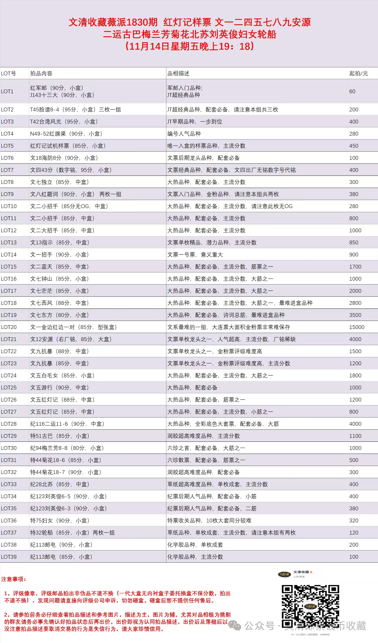 文清收藏25年11月14日拍卖