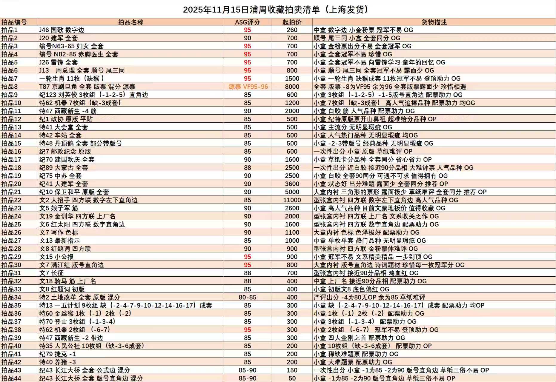浦周收藏25年11月15日拍卖