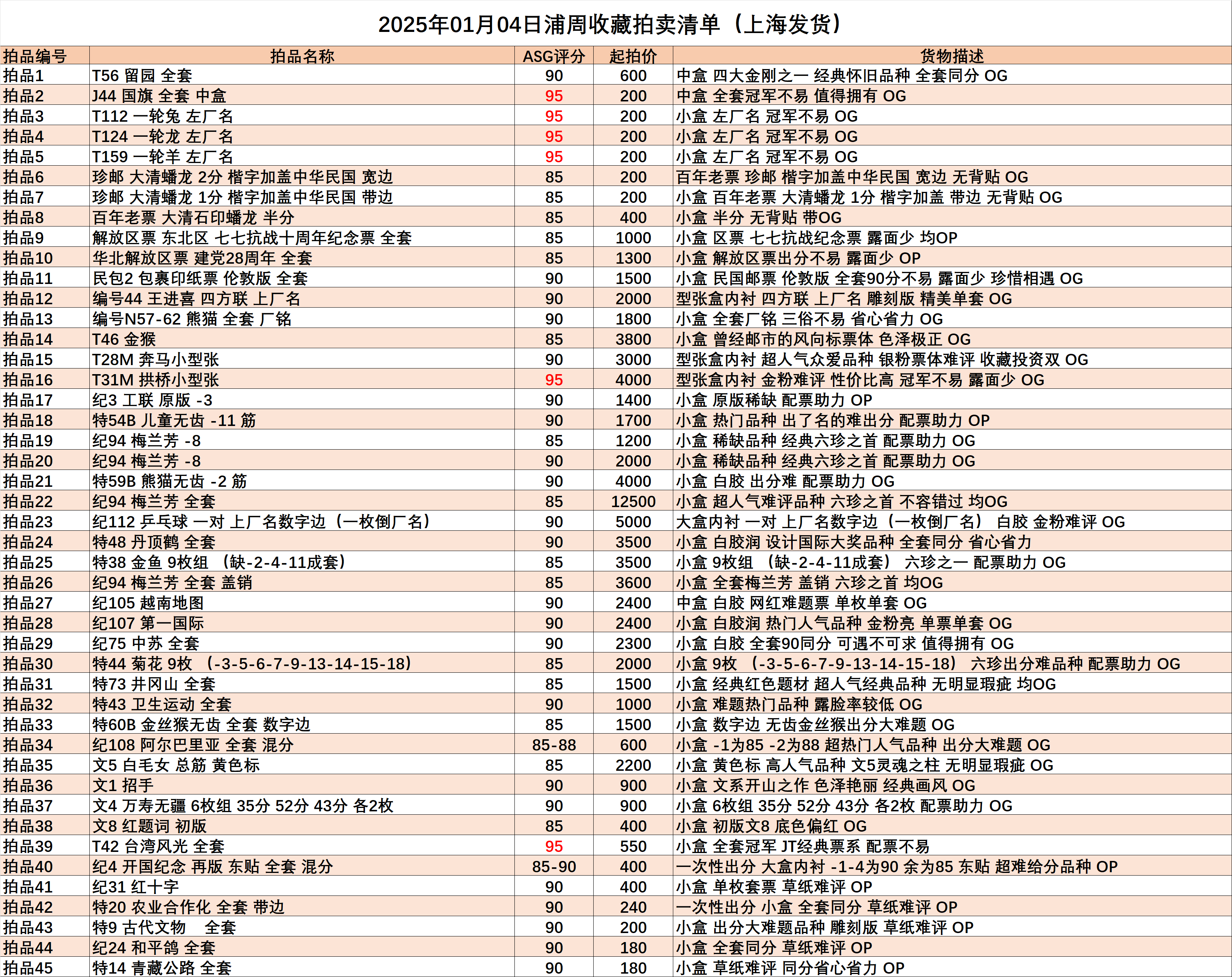 浦周收藏26年1月4日拍卖