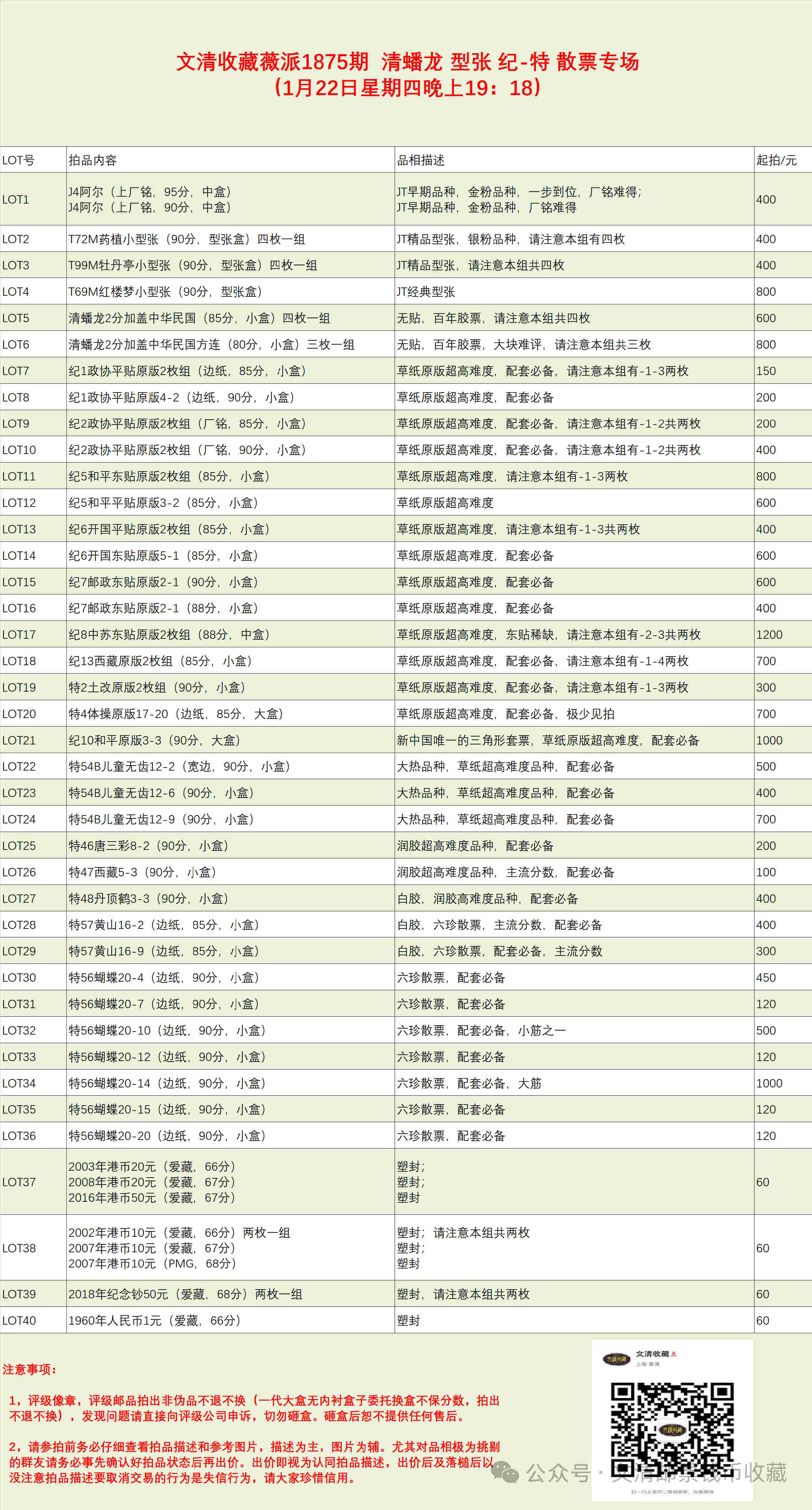 文清收藏26年1月22日拍卖