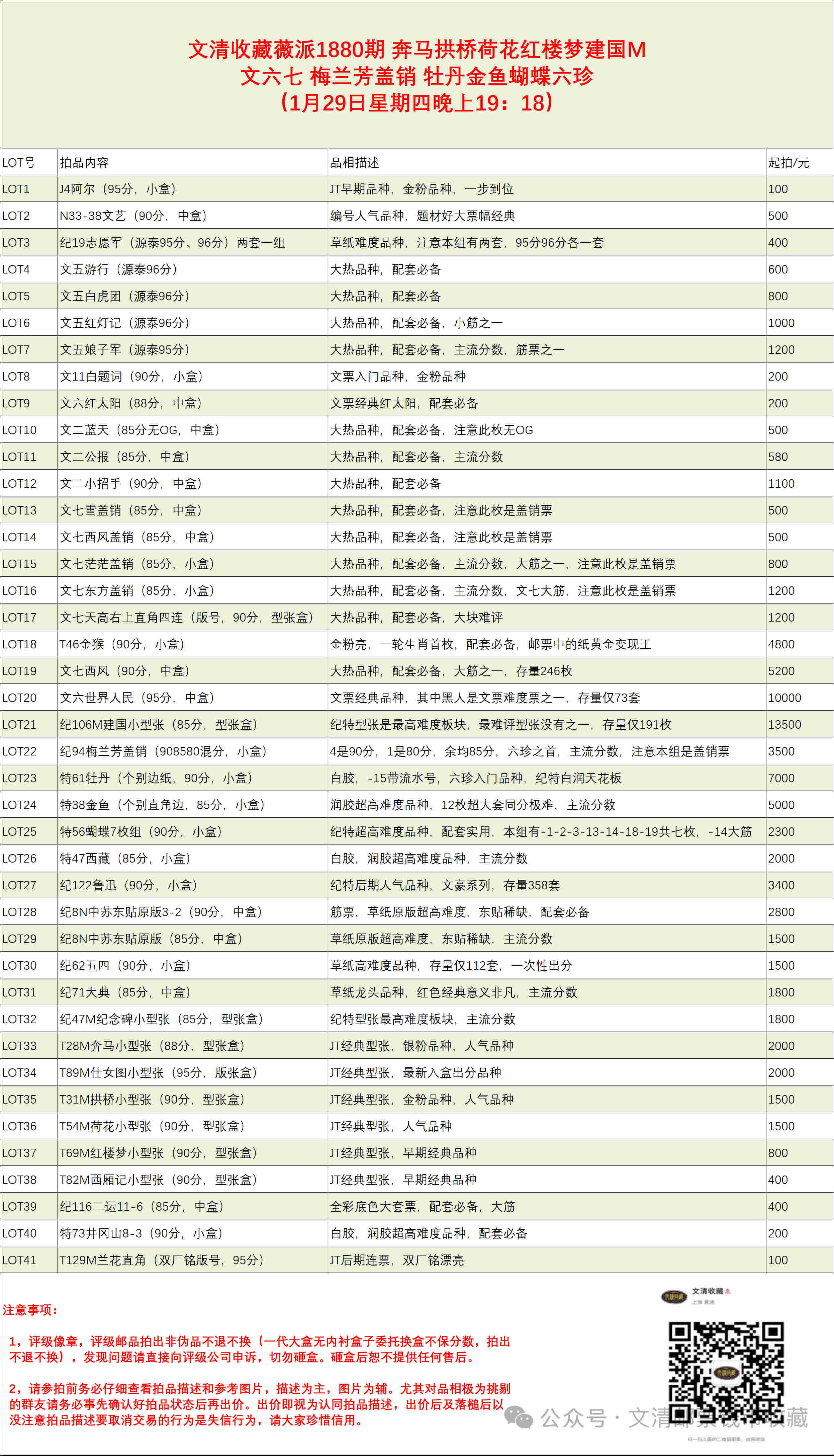 文清收藏26年1月29日拍卖