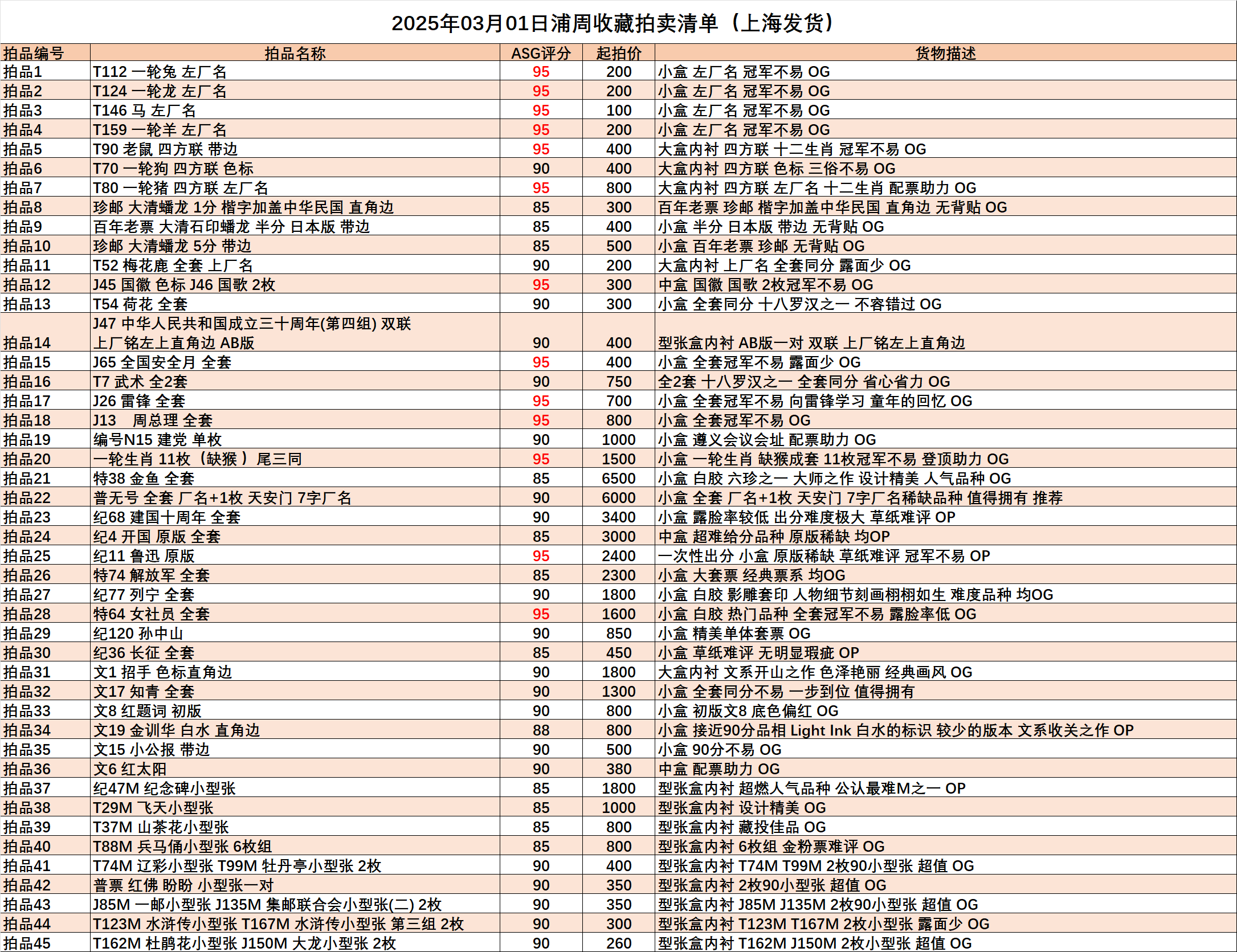 浦周收藏26年3月1日拍卖